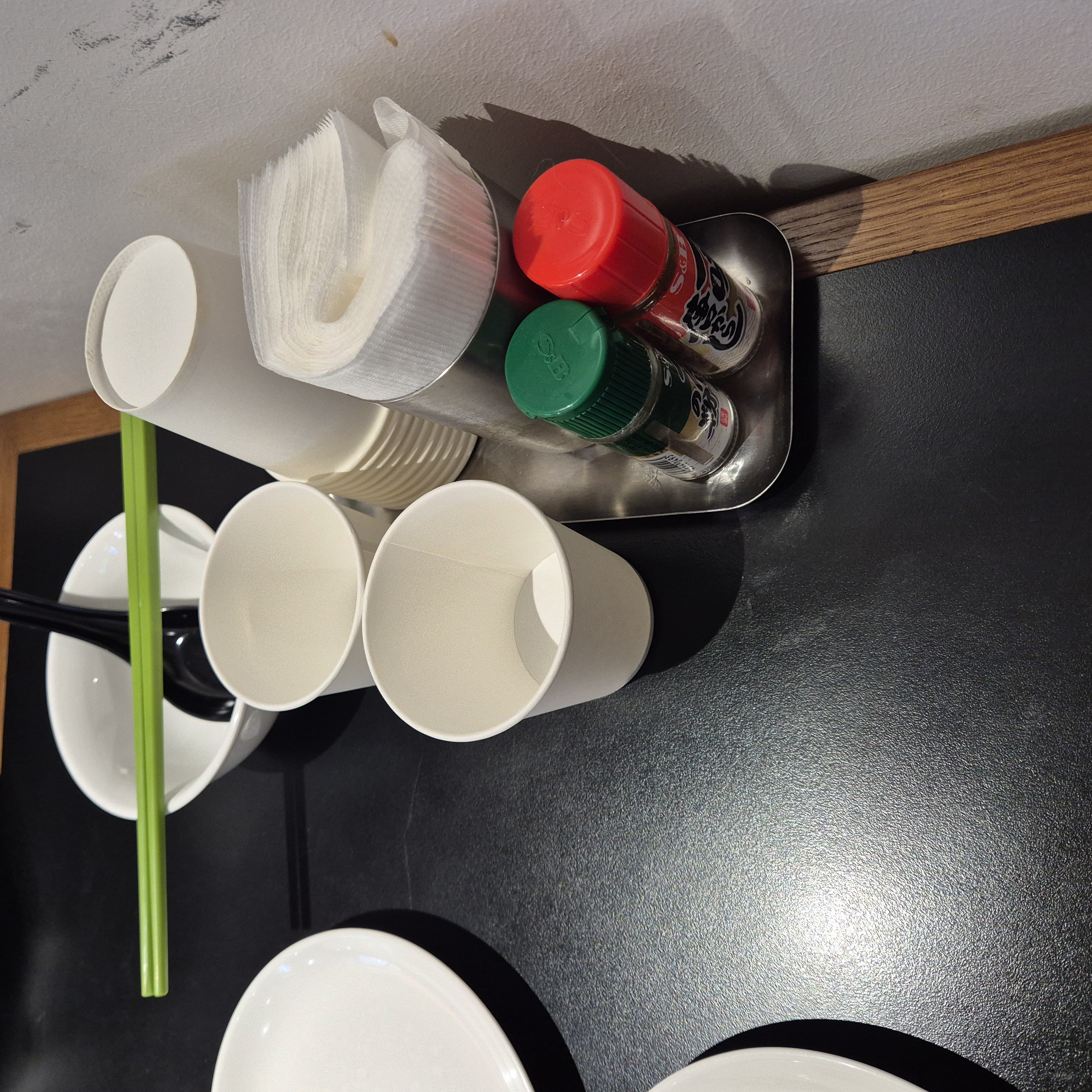 ✔ 종이컵과 냅킨, 소스 등 기본 세팅이 깔끔했다.